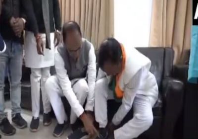 शिवराज सिंह चौहान ने BJP नेता को अपने हाथों से पहनाए जूते, इस वजह से पिछले 6 साल से थे नंगे पैर