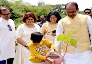 मुख्यमंत्री चौहान ने बरगद, जामुन और कदम्ब के पौधे रोपे