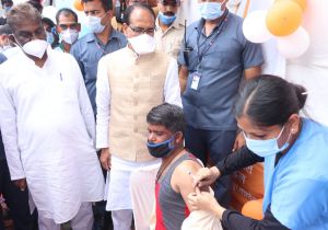 प्रधानमंत्री के जन्मदिन पर सेवा-समर्पण महाअभियान, वैक्सीनेशन के लिए सीएम ने चलाई व्हीलचेयर