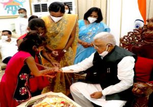 23 Aug, 2021 09:04 AM IST | SAMIKSHASAGAR.COMभोपाल राज्यपाल मंगुभाई पटेल को रक्षाबंधन के पावन पर्व पर बहनों द्वारा रक्षा सूत्र बांधकर रक्षाबंधन...