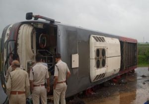 जबलपुर जा रही बस विदिशा में पलटी, 10 से ज्यादा घायल,3 की हालत गंभीर