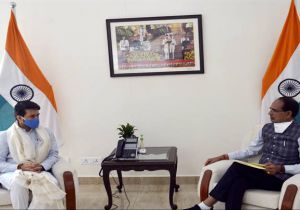 मुख्यमंत्री चौहान की केन्द्रीय रसायन, उर्वरक एवं स्वास्थ्य मंत्री मांडविया से मुलाकात