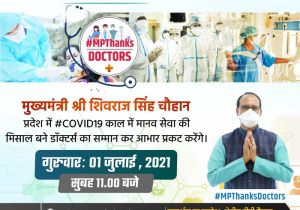 1 Jul, 2021 10:00 AM IST | SAMIKSHASAGAR.COMभोपाल मुख्यमंत्री शिवराज सिंह चौहान के मुख्यआतिथ्य में एक जुलाई को डॉक्टर्स-डे सम्मान एवं संवाद कार्यक्रम...