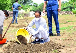 मुख्यमंत्री शिवराज सिंह चौहान ने स्मार्ट उद्यान में चंदन का पौधा रोपा