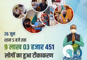 27 Jun, 2021 09:40 AM IST | SAMIKSHASAGAR.COMभोपाल वैक्सीनेशन महाअभियान के तहत एक दिन में रिकार्ड 16 लाख 91 हजार से अधिक वैक्सीन...