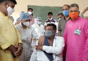 गृह मंत्री डॉ. मिश्रा ने वैक्सीनेशन सेंटर जाकर की हौसला अफजाई