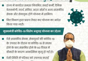 19 Jun, 2021 11:00 AM IST | SAMIKSHASAGAR.COMभोपाल कोविड-19 के संक्रमण से उत्पन्न परिस्थितियों में राज्य की सेवा में कार्यरत कर्मियों की आकस्मिक...