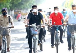 मंत्री सारंग ने सुबह से साइकिल पर निकलकर लोगों को दिया जागरूकता का संदेश