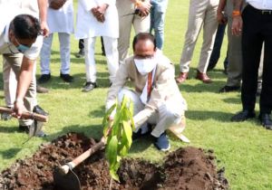 मुख्यमंत्री चौहान ने आम का पौधा लगाया