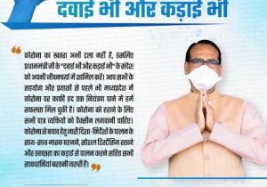 मुख्यमंत्री चौहान वाहन द्वारा सड़कों पर जाकर खुद करेंगे मास्क लगाने का आव्हान