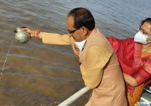 मुख्यमंत्री चौहान ने गुजरात में नर्मदा संगम स्थल पर की पूजा