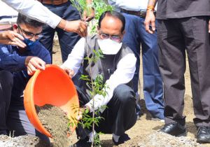 मुख्यमंत्री चौहान ने स्मार्ट उद्यान में नीम का पौधा लगाया
