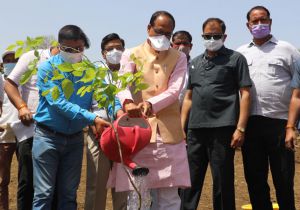 मुख्यमंत्री चौहान ने करंज का पौधा लगाया