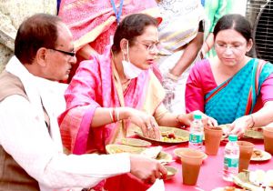मुख्यमंत्री शिवराज सिंह चौहान ने सपत्नीक दीदी कैफे में किया भोजन