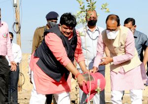मुख्यमंत्री चौहान ने लगाया पारिजात का पौधा