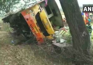 बारातियों की बस पलटी, एक की मौत, 12 घायल