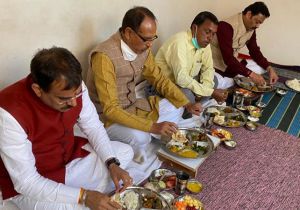 कटनी में मुख्यमंत्री चौहान ने किया राजेन्द्र के घर भोजन