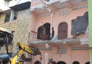 भू माफिया के खिलाफ कार्यवाही, तोड़ा शातिर बदमाश बॉबी उर्फ अहमद का अवैध निर्माण