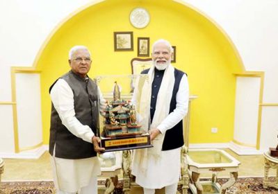 प्रधानमंत्री मोदी का राज्यपाल पटेल ने राजभवन में किया स्वागत