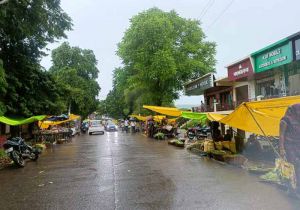 रिमझिम बारिश के बीच लगा हाट बाजार शाम तक दुकानों पर मक्खी भगाते रहे दुकानदार