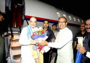 केंद्रीय गृह मंत्री अमित शाह का भोपाल विमानतल पर आगमन