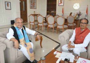 मुख्यमंत्री चौहान से केन्द्रीय मंत्री तोमर ने की सौजन्य भेंट