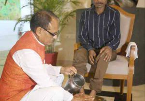 CM आवास में कुर्सी दी, थाली में धोए पैर; पेशाब कांड के पीड़ित से बोले शिवराज- आप भगवान के समान