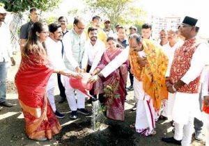 मुख्यमंत्री चौहान के साथ नियमित पौध-रोपण में शामिल हुए पंडित प्रदीप मिश्रा