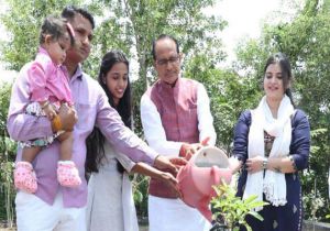 मुख्यमंत्री चौहान के साथ बेटियों के जन्म-दिवस पर परिवारजन ने लगाए पौधे