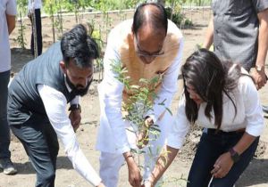 मुख्यमंत्री चौहान ने पीपल, आम और इमली के पौधे लगाए