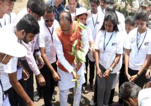 मुख्यमंत्री चौहान के साथ कर्नाटक के विद्यार्थियों ने किया पौध-रोपण