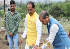 मुख्यमंत्री चौहान ने लगाए पीपल, अमरूद और शहतूत के पौधे