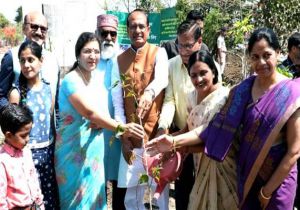 मुख्यमंत्री चौहान ने परोपकार महिला मंडल के सदस्यों के साथ लगाए पौधे