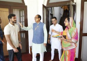 9 Mar, 2023 10:21 AM IST | SAMIKSHASAGAR.COMभोपाल मुख्यमंत्री चौहान ने आज सुबह मुख्यमंत्री निवास में धर्मपत्नी श्रीमती साधना सिंह, पुत्र कार्तिकेय सिंह...
