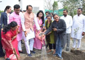 मुख्यमंत्री चौहान ने आँवला, गुलमोहर और अमरूद के पौधे रोपे