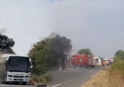 भोपाल से सागर जा रही चार्टर्ड बस में आग लगी