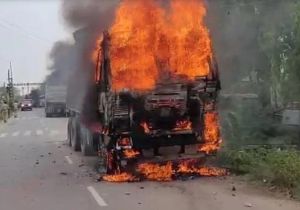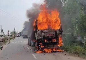 प्रदर्शनकारियों ने वाहनों पर किए पथराव ,लगाई आग