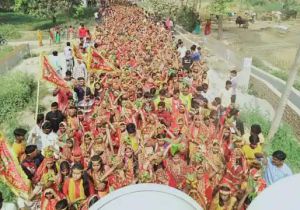कलश यात्रा में उड़ी सोशल डिस्टेंसिंग की धज्जियां, प्रशासन के मना करने पर भी निकाली गयी यात्रा
