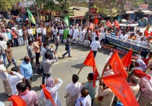 बंद के समर्थन में सड़कों पर उतरे महागठबंधन कार्यकर्ता, नारेबाजी