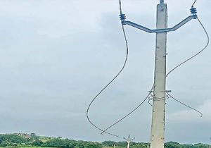 बिजली के पोल से तार काट कर ले गये चोर, गांव में छाया अंधेरे