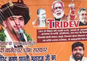 बागेश्वर बाबा के स्वागत में BJP ने लगाए पोस्टर, पीएम मोदी, योगी और सुशील मोदी को बताया 'त्रिदेव'