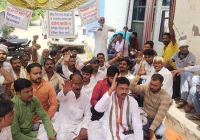कांग्रेस कार्यालय के बाहर टेंट लगाकर धरने पर बैठ राजेन्द्र भारती के समर्थक