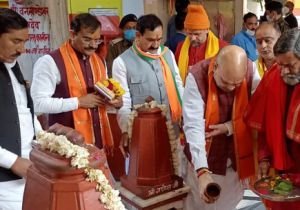 केन्द्रीय गृह मंत्री शाह ने माँ पीताम्बरा पीठ में की पूजा-अर्चना