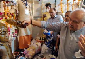 केन्द्रीय मंत्री नरेन्द्र सिंह तोमर ने भगवान शनिदेव पर तेलाभिषेक किया