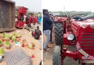 गंभीर हादसा टला- श्रद्धालुओं से भरी ट्रैक्टर ट्रॉली पलटी