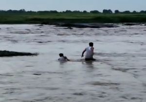 नदी के बीच फंसे दो युवकों को थाना प्रभारी ने बचाया