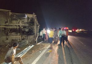 सिंध नदी पुल के पास अनियंत्रित होकर सवारियों से भरी बस पलटी