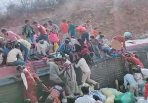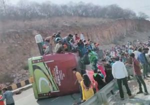 मजदूरों से भरी ओवरलोड बस पलट गई, दो मौत