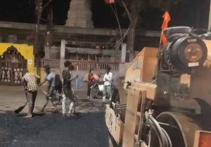 आरोन के मुख्य बाजार में चल रहा डामरीकरण के साथ सौंदर्य करण