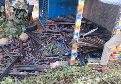 मोहनगढ़ में अनियंत्रित पिकअप वाहन पलटा, ड्राइवर सुरक्षित
